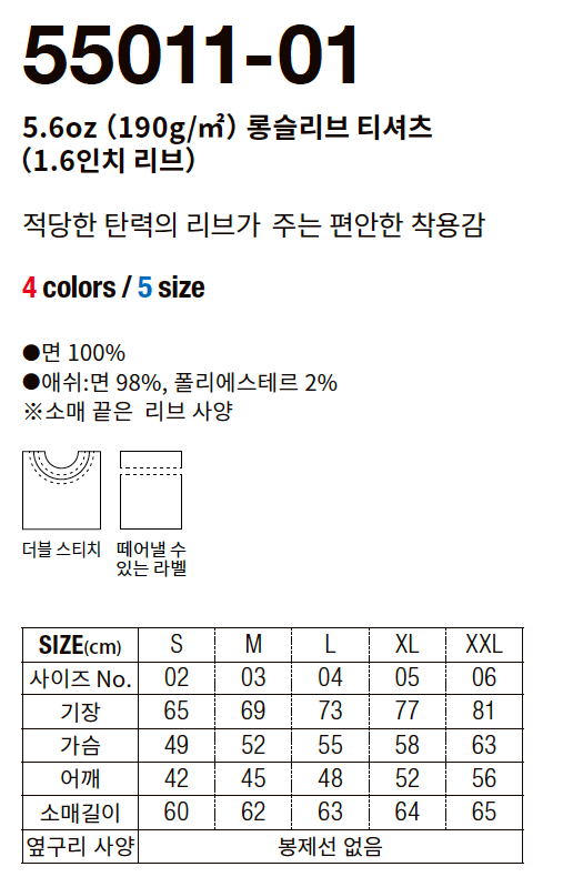 5.6oz (190g/㎡ ) 롱슬리브티셔츠