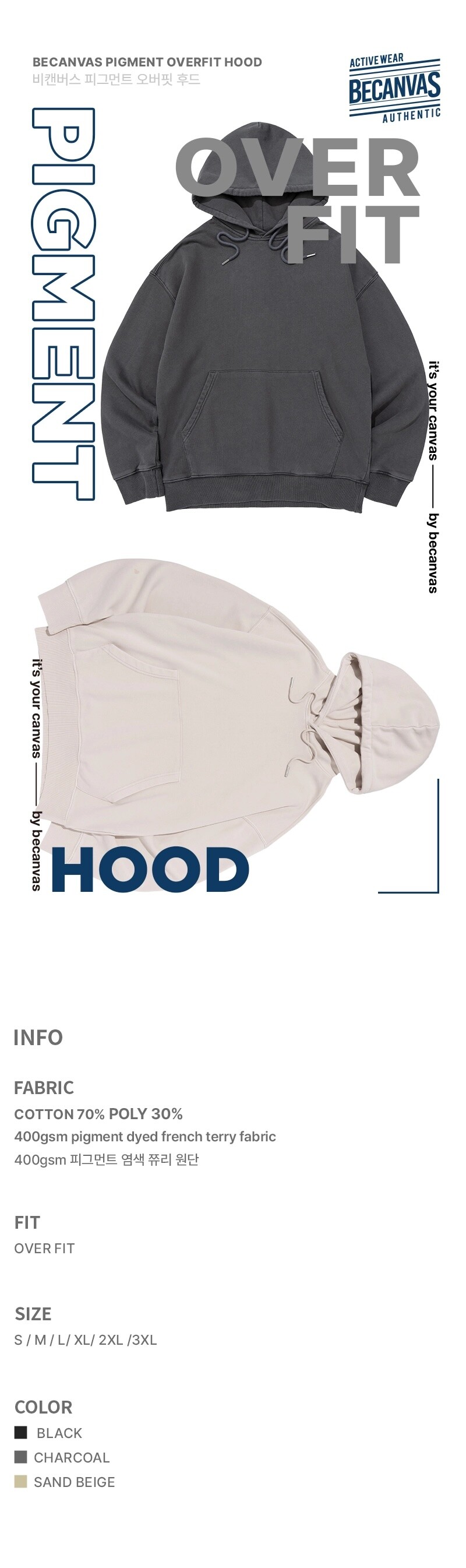 비캔버스 피그먼트 쮸리 후드티-두툼/세미오버핏 [10장제작 / 왼가슴인쇄포함]