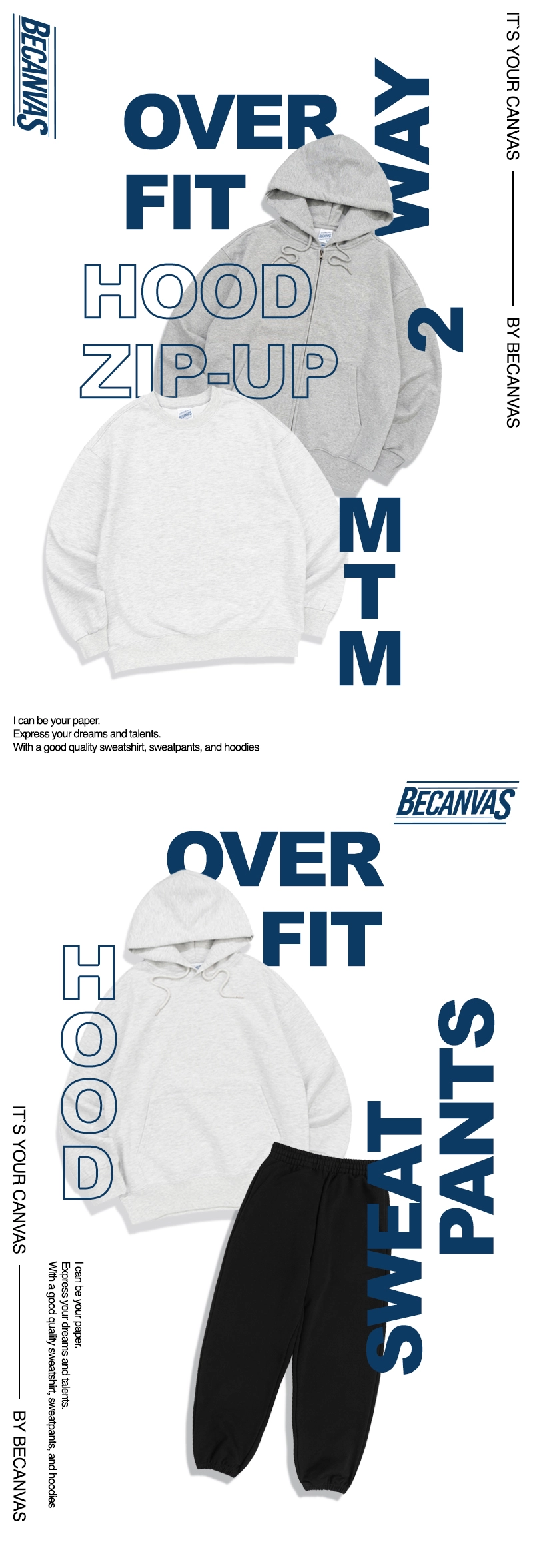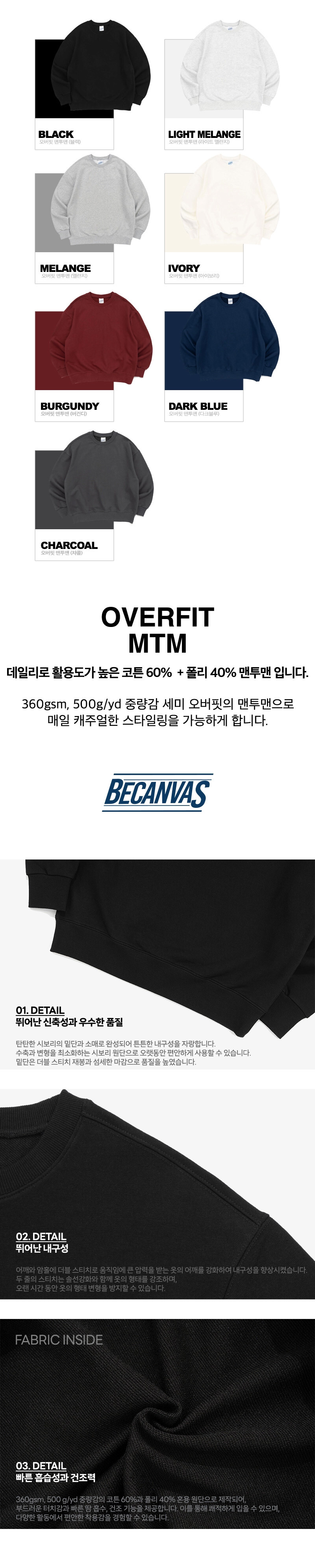 비캔버스 헤비웨이트 맨투맨-두툼탄탄/세미오버핏 [10장제작 / 왼가슴인쇄포함]