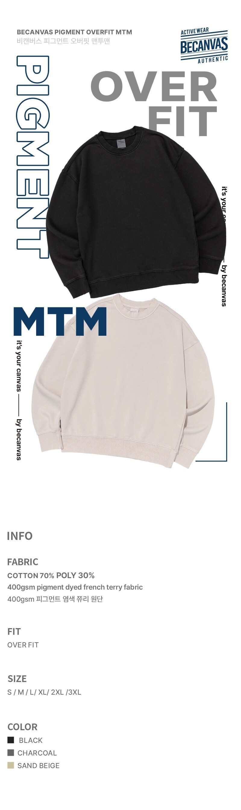 비캔버스 피그먼트 쮸리 맨투맨-두툼/세미오버핏 [10장제작 / 왼가슴인쇄포함]