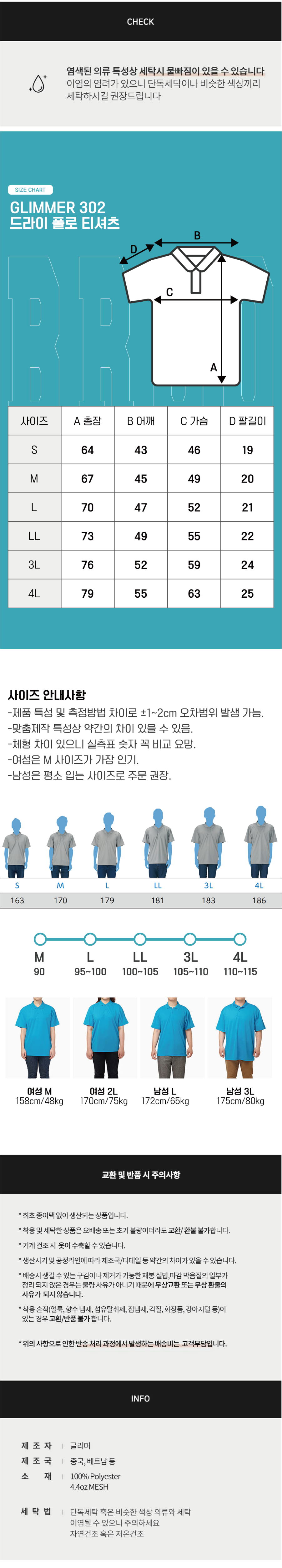 글리머 302 기능성 드라이 폴로T 리뉴얼 컬러 20종