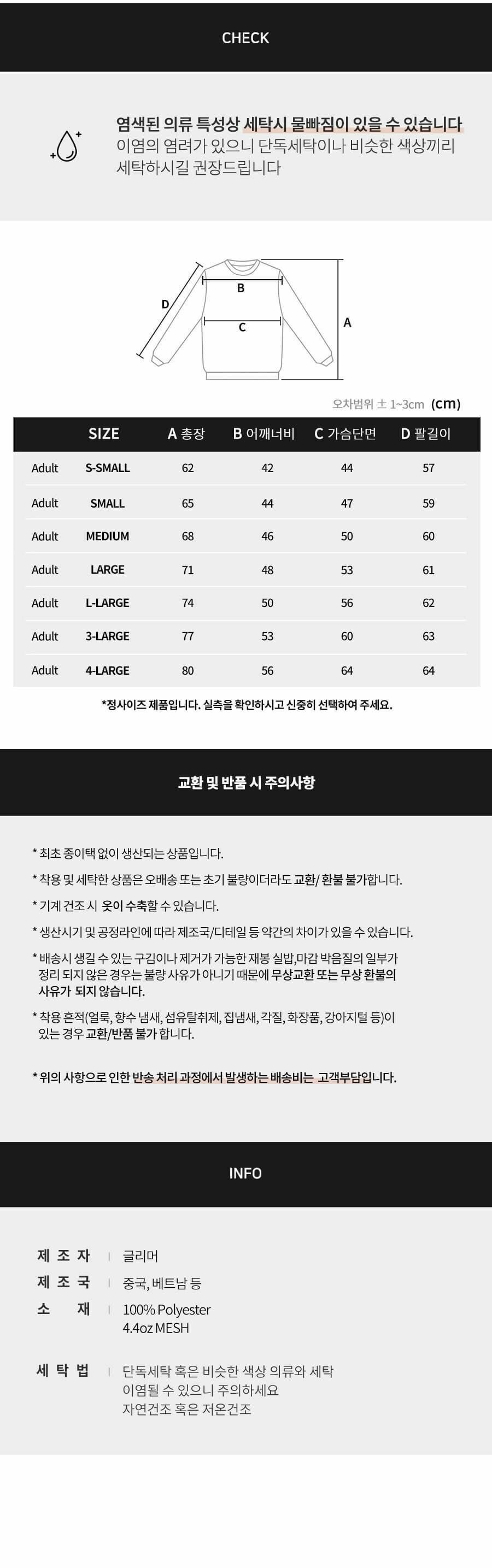 맞춤제작 특성상 제품불량을 제외한 교환 및 반품은 불가한 점 양해 바랍니다.