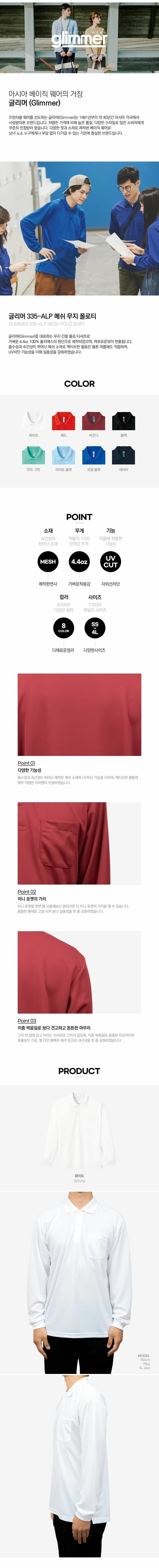 글리머 335 [150g/기능성] 드라이 폴로 긴팔T(주머니있음)