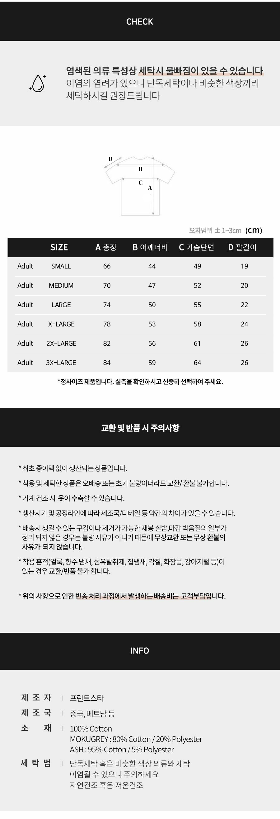 인쇄가 들어가지 않은 무지상품의 경우 교환가능하며, 판매자의 실수로 인한 오류/불량은 항시 교환가능합니다.