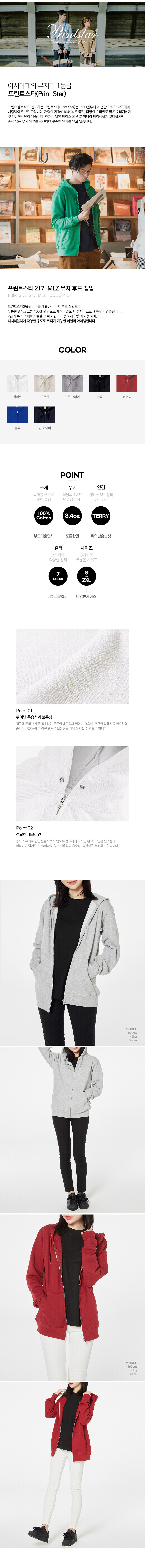 프린트스타 217 후드집업 -미니쭈리285g 중간두께/아시안핏 [10장제작 / 왼가슴인쇄포함]