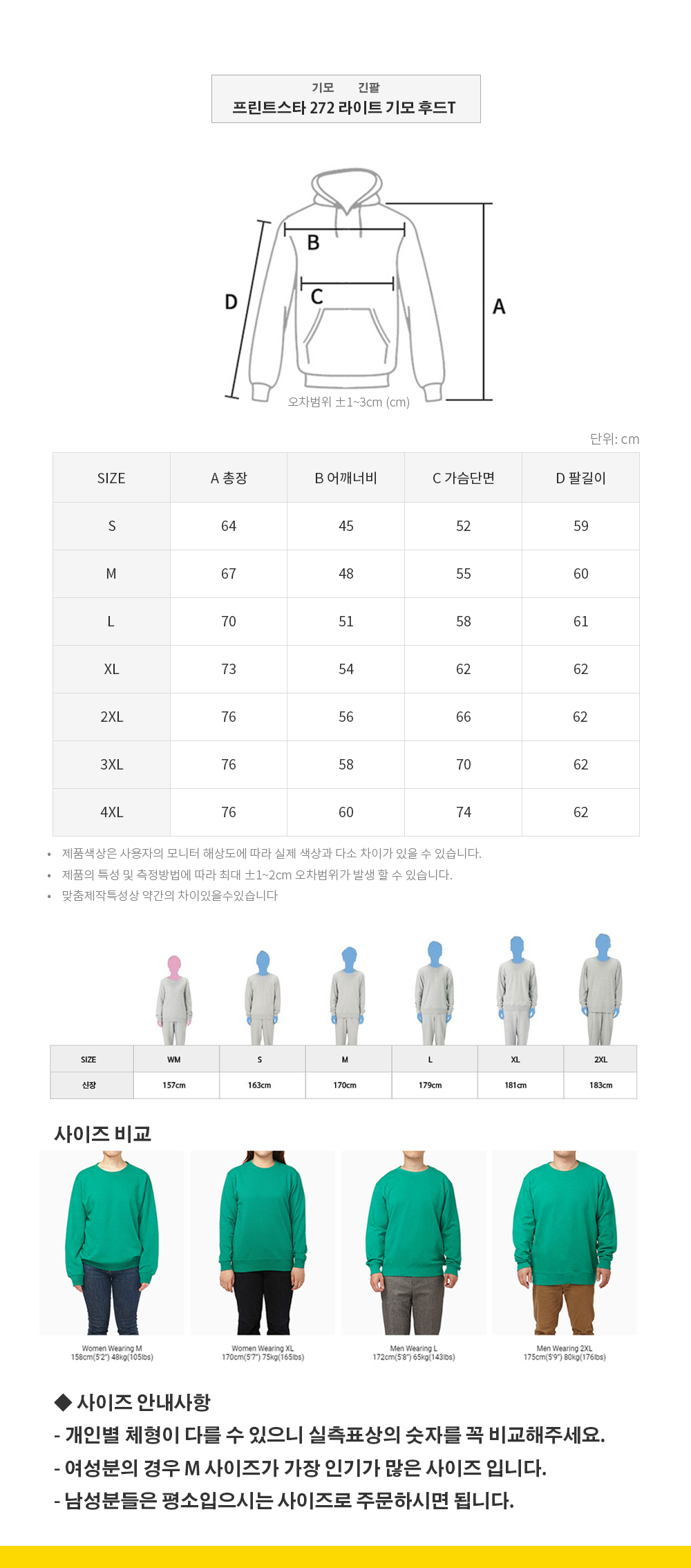 제작과정 및 측정자에 따라 1~2cm의 오차가 발생할 수 있으며, 이와 같은 경우에는 제품불량기준에 해당하지 않을 수 있는 점 양해 부탁드립니다.