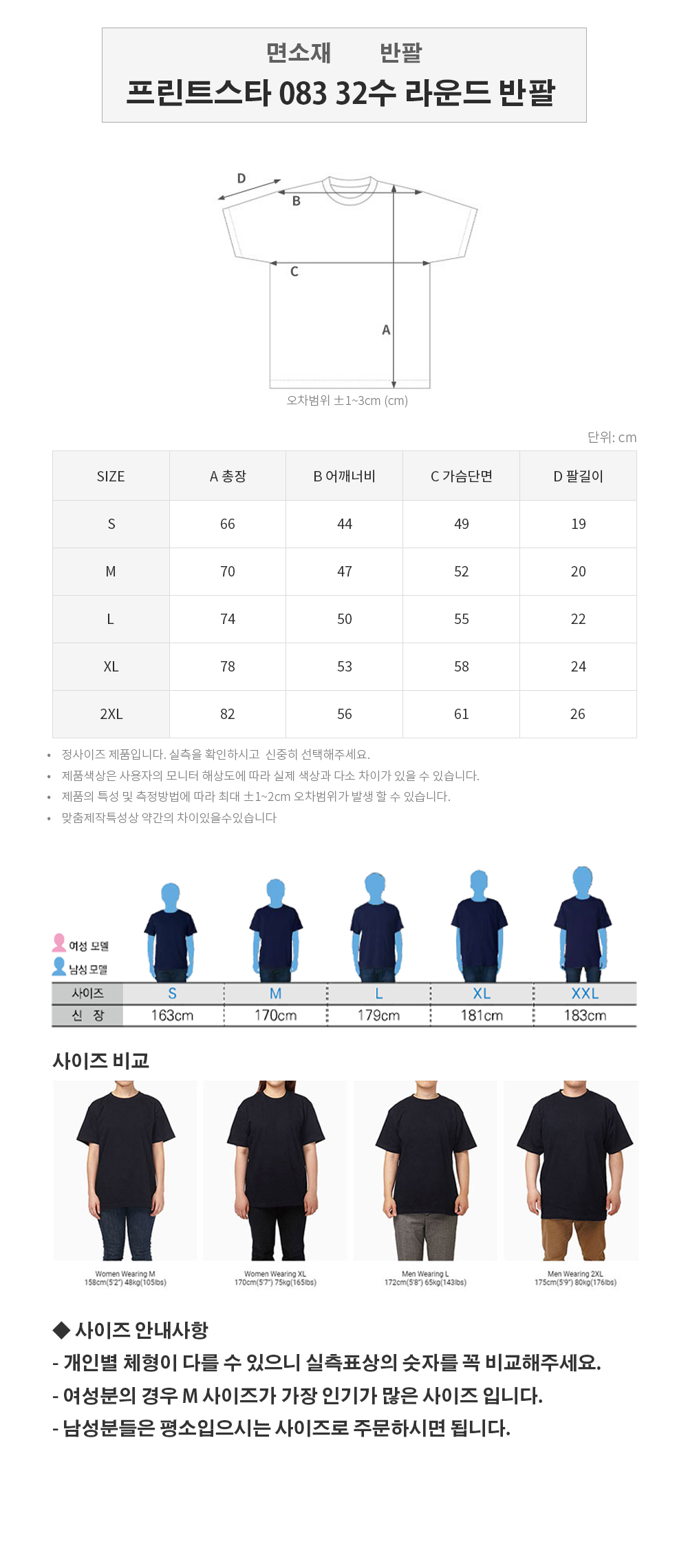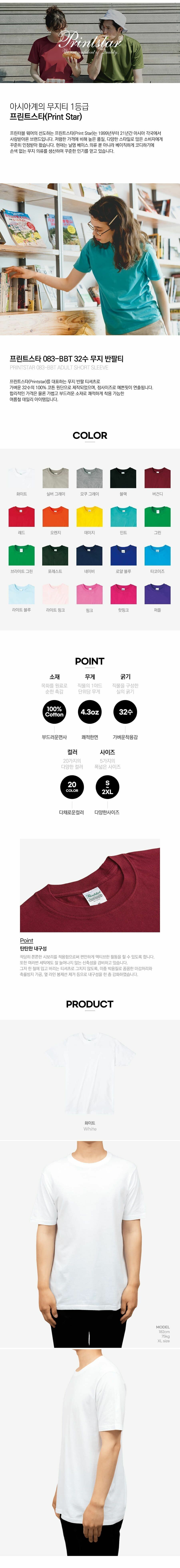 프린트스타 083 라운드 반팔(32수) 리뉴얼 컬러 8종