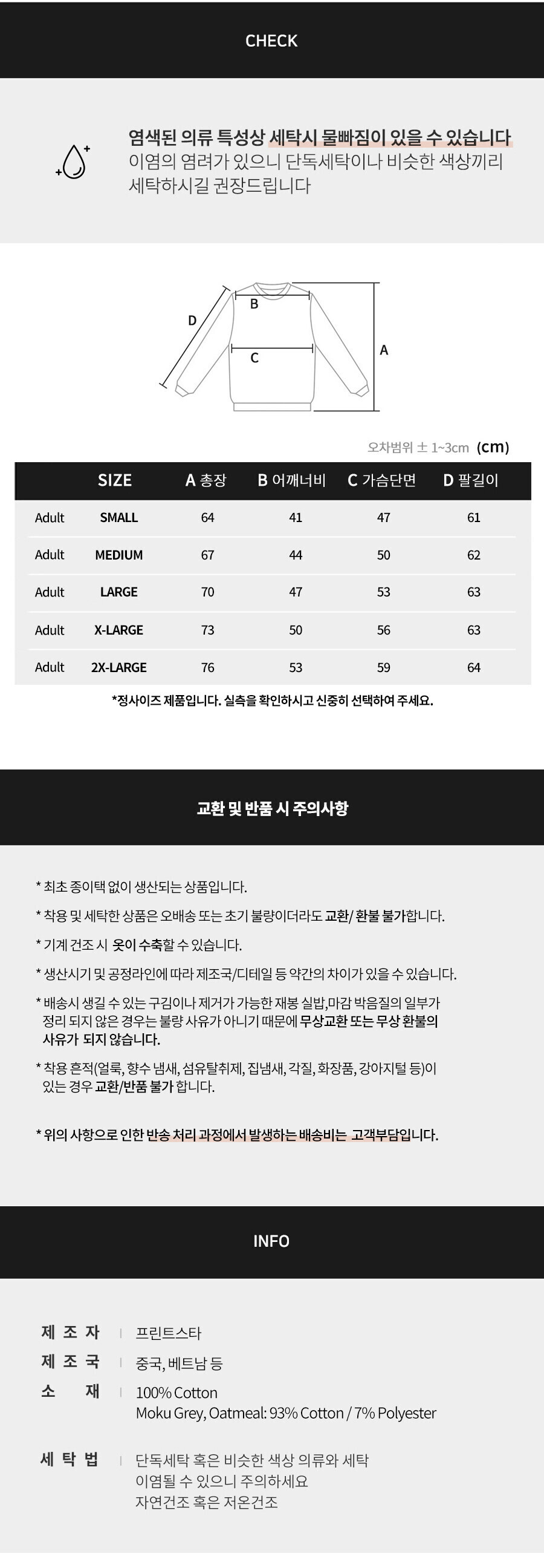 프린트스타 219 맨투맨T -미니쮸리285g 중간두께/아시안핏
