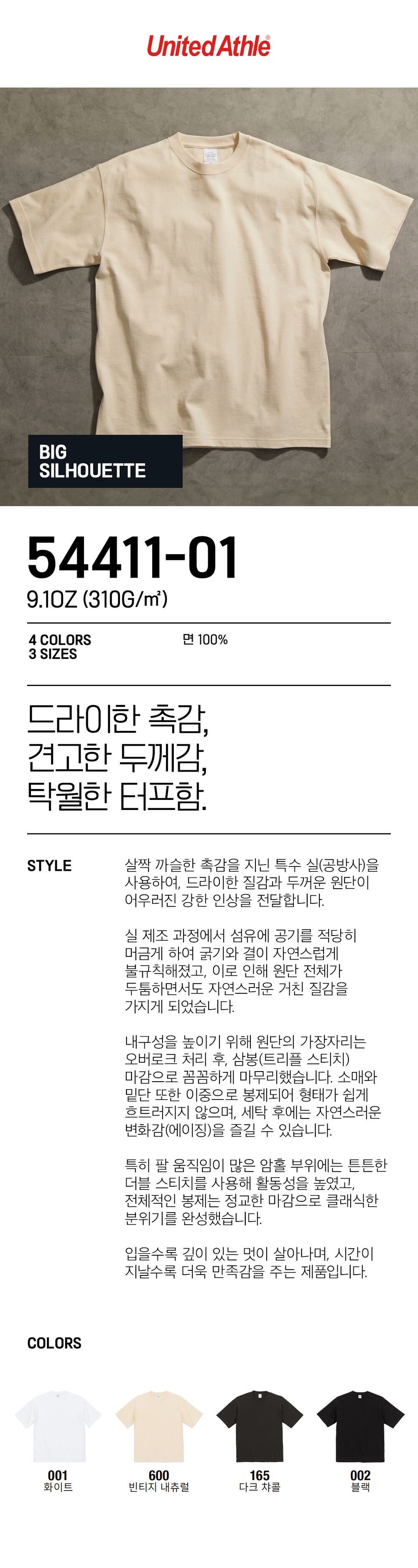 유나이티드 애슬 54411 [빅실루엣핏/매우두꺼움] (310g) [10장제작 / 왼가슴인쇄포함]