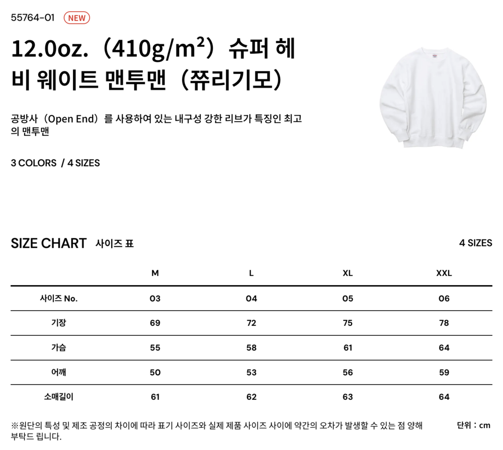 유나이티드애슬 55764 슈퍼헤비 맨투맨 (쭈리-중간두께/340g) [10장제작 / 왼가슴인쇄포함]