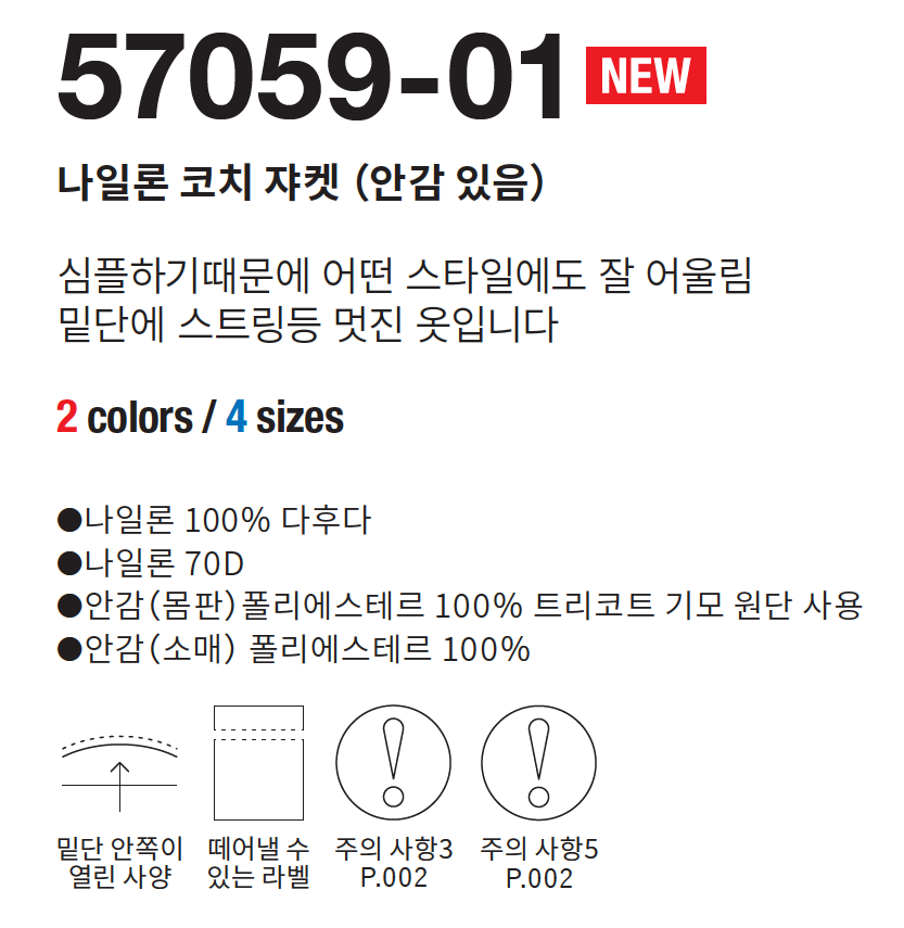 유나이티드 애슬 57059 나일론 코치 쟈켓 (안감 있음) [10장제작 / 왼가슴인쇄포함]