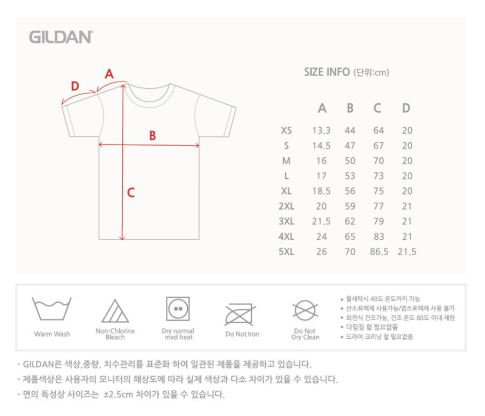 [특대 3XL~5XL주문가능] 길단 76000 [아시안핏/180g] 라운드T