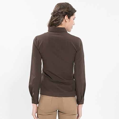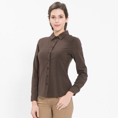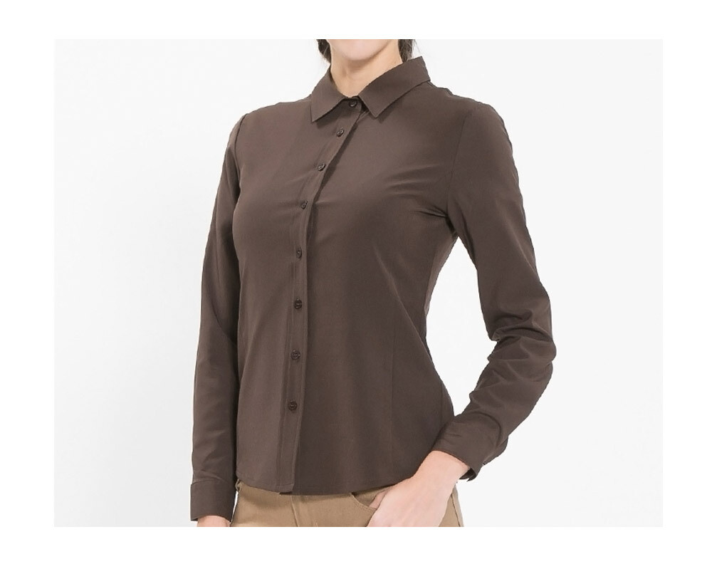 폴리스판을 사용하여 캐주얼함과 심플한 디자인이 돋보이는 여성용용단색셔츠(남방)입니다.