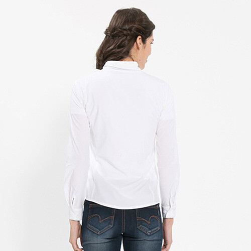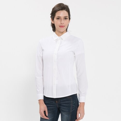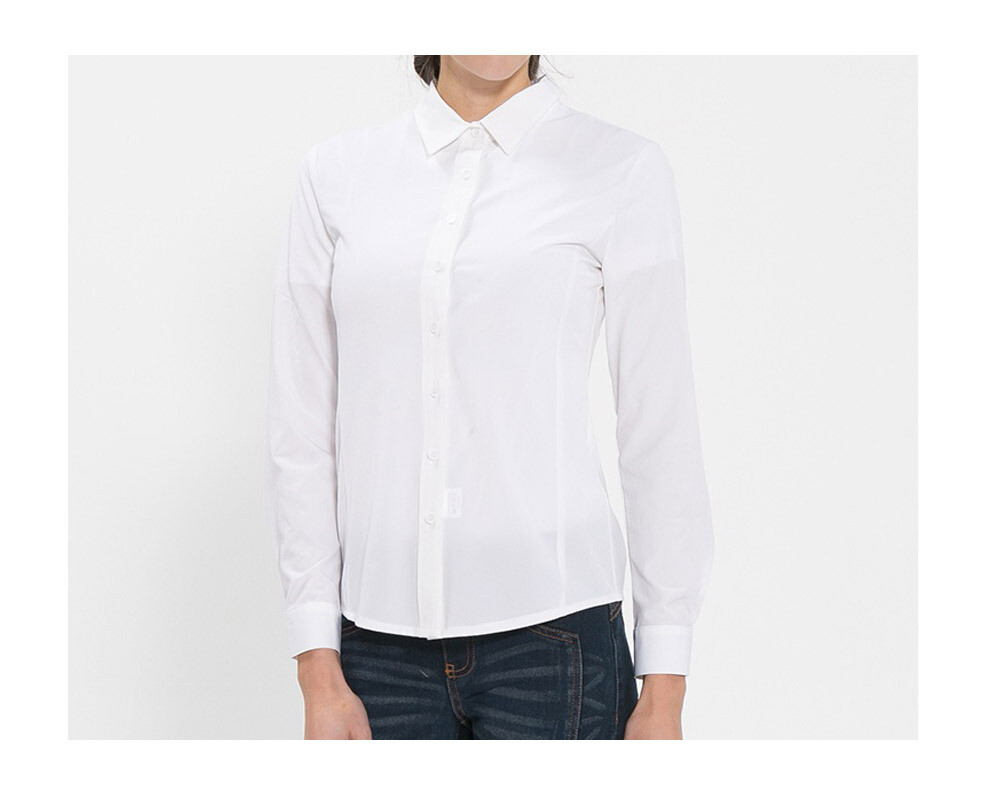폴리스판을 사용하여 캐주얼함과 심플한 디자인이 돋보이는 여성용용단색셔츠(남방)입니다.